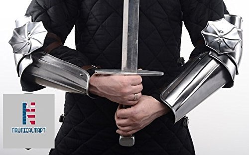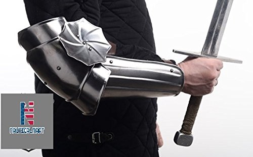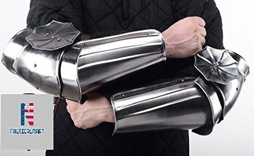 Product Description Arm Bracers "Avalon" Mod 2011 Excellent bracers, having a stretched form they not only protect the arm, but also cover the Elbow. They are comfortable and don't limit the mobility. The edges are carefully rolled and have a thickness of 3-4 mm, which makes them comfortable and safe as for the wearer, so for the teammates and opponents. A special floating belt system protects the arm from the direct contact with metal even in case of a strongest hit. The bracers are fastened on the arm by belts made of natural leather. From the inside the belts are extra processed to have thickness of 2.2 mm on their whole length. This makes it possible to buckle them quickly and easily and to hide the rest of the belt. The belts are long enough to wear the bracers over the gambeson or chainmail sleeves or quilted bracers. The bracers are coated with rust-free paint from the inside. Manufactured Sold by NauticalMart Inc. 0