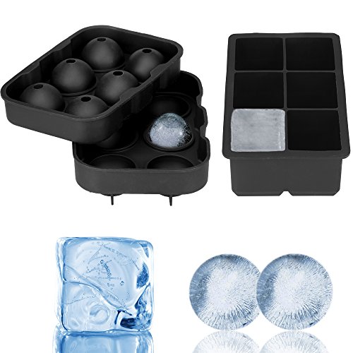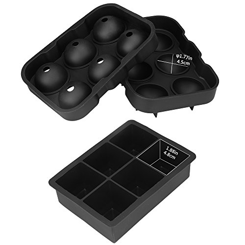 Groway Flexible Silicone Ice Cube Tray Sphere Ice Ball Maker 2 Pack Ice Molds with Square and Round Shape Keep Your Drink Chilled