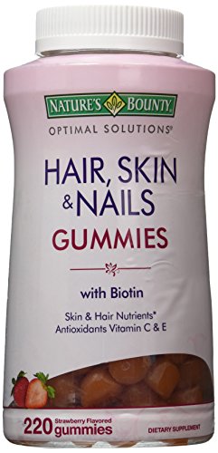 -. Title : Nature's Bounty Optimal Solutions Hair, Skin and Nails Gummies 220 Count With Biotin Strawberry Flavored