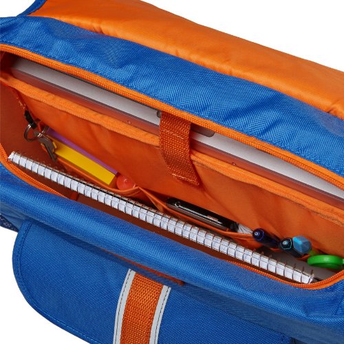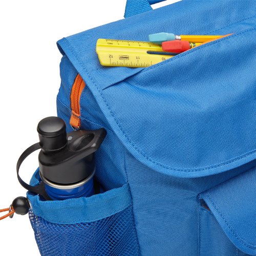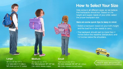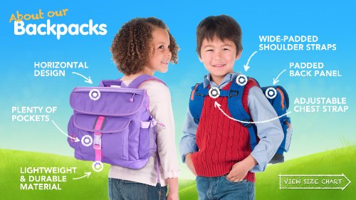 Perfectly sized to carry everything your tyke needs, this backpack features a patented horizontal design with ergonomic attributes allowing the weight to rest above waist level. The cover flap pocket opens to a main compartment with plenty of space for books, binders and notebooks. A padded sleeve pocket protects laptop or tablet. Three interior organizer pockets hold small necessities like pencils, pens, crayons and an mp3 player. Even when it's packed to the brim, this backpack feels comfortable on kid shoulders, thanks to contoured shoulder straps with cushy padding. Five exterior pockets (including a lunch money pocket and water bottle holder) plus an ID holder helps you stay organized. Made of durable, water-resistant 600-denier polyester, this backpack is made to last and is cool-looking too. For every backpack purchased, Bixbee donates a schoolbag with supplies to a kid in need. One Here. One There.Feature