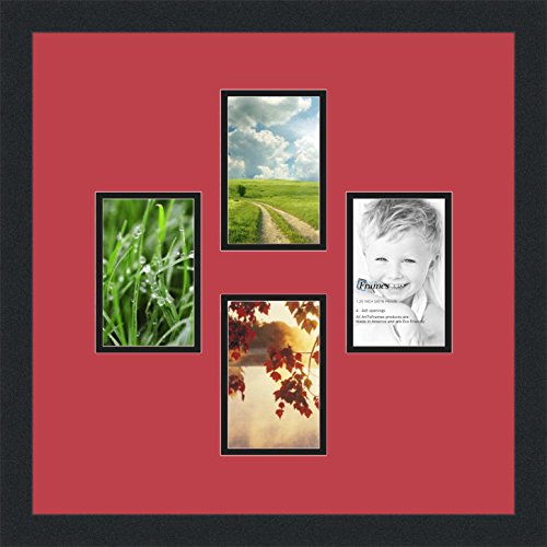 Art to Frames Double-Multimat-498-762/89-FRBW26079 Collage Photo Frame Double Mat with 4 - 4x6 Openings and Satin Black Frame