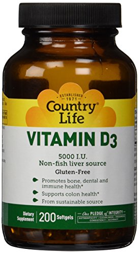 -. Binding : Health and Beauty -. Brand : Country Life -. Color : Parent -. Feature : Pack of 200 softgels / From non-fish liver source / Important for overall health, including healthy bone structure and immune support -. IsAdultProduct : 0 -. Label : COUNTRY LIFE -. LegalDisclaimer : Actual product packaging and materials may contain more and different information than what is shown on our website. We recommend that you do not rely solely on the information presented and that you always read labels, warnings, and directions before using or consuming a product. -. Manufacturer : COUNTRY LIFE -. MPN : F1CL:5808#CL#VitaminD35000Iu200-2PK -. PackageQuantity : 1 -. PartNumber : F1CL:5808#CL#VitaminD35000Iu200-2PK -. ProductGroup : Health and Beauty -. ProductTypeName : HEALTH_PERSONAL_CARE -. Publisher : COUNTRY LIFE -. Studio : COUNTRY LIFE -. Title : Country Life - Vitamin D3 5000 IU