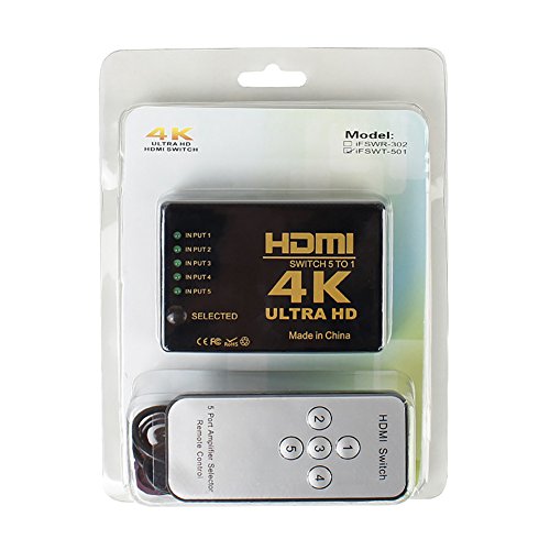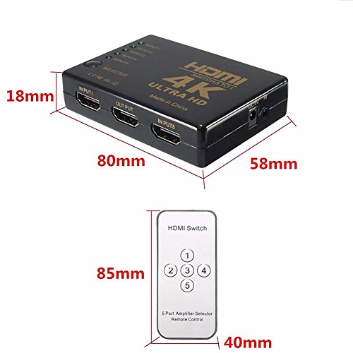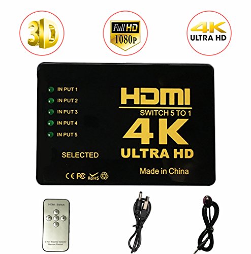 ILOVA 4K HDMI Switch 5 Port Video Switcher Supports 3D Full 1080P Ultra HD HDMI Splitter with IR Remote