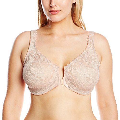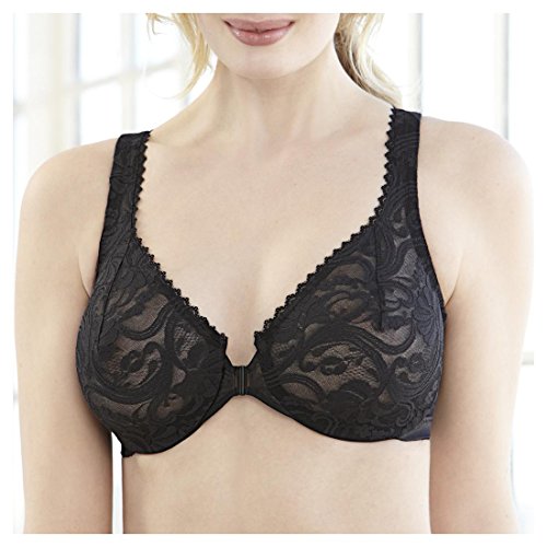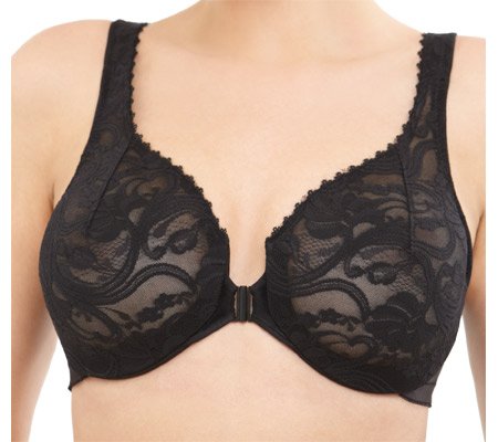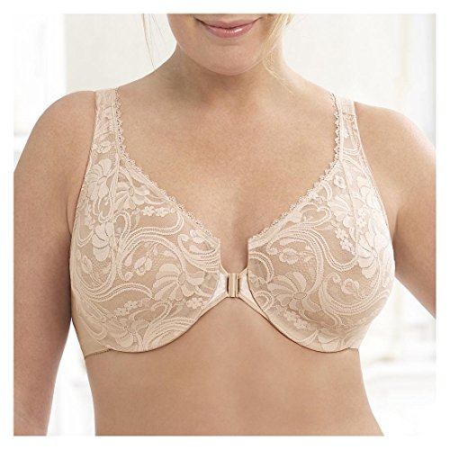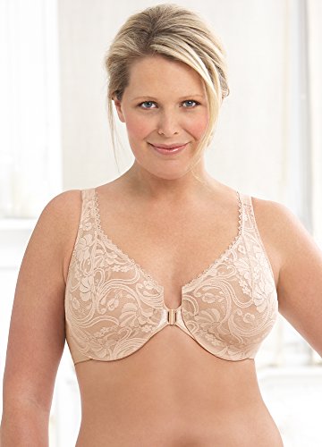 Full coverage front-closure bra with a unique underwire, Darted, unlined molded double-layer lace cups. Wonderwire design has a hidden cushioned comfort band, Comfort band prevents underwire from touching the body. Back adjustable, close-set, straps won't slip Glamorise, Style Number: 9245.Feature