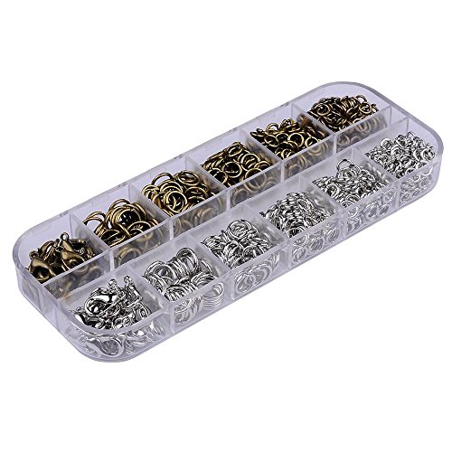 A BOX 2 COLOR 1040 Pcs Dull Silver Antique Bronze Plated Open Jump Rings 4mm 5mm 6mm 7mm 8mm and Lobster Claw Clasps 12mm For Jewlery Making Findings