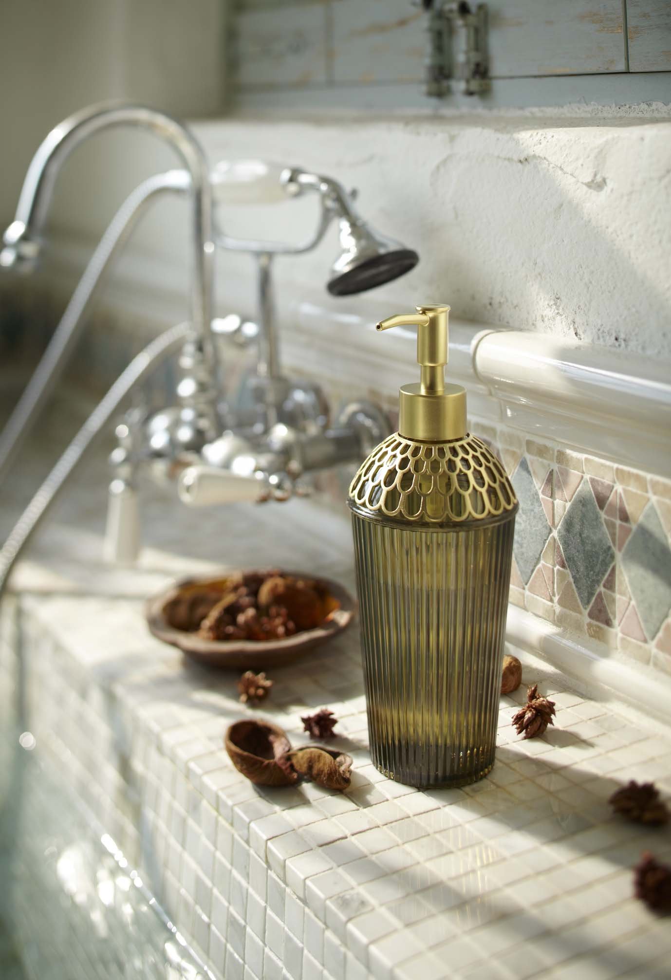 ● Dispenser with beautiful combination of watermark pattern cover and transparent body