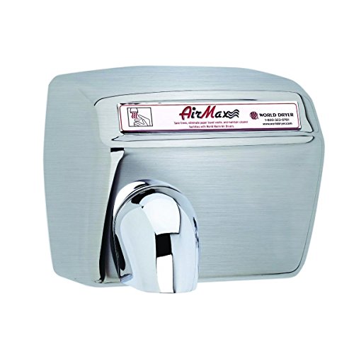 World Dryer DXM5-973 AirMax High Speed and Heavy Duty Hand Dryers, Automatic, 110-120V, Stainless Steel Brushed