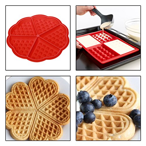 Pengxiaomei 2 Pcs Silicone Waffle Baking Mold, Red Mini Heart Cake Pan Muffin Cookie Dessert Cooking Mould