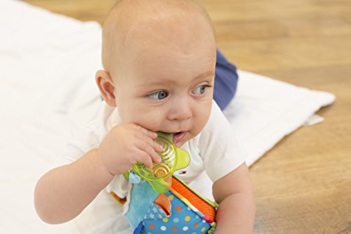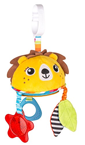 Unique shaped clip easily attaches to car seats and strollers so that toy is always FRONT front