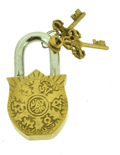 Handmade Buddha on Lotus Tibetan Monastery Padlock, Tibetan Mantra Prayer Padlock, #5