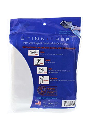 Studio : Stink Free Publisher : Stink Free Binding : Misc. Product Description STINK FREE Scoop and Bag Self-Bagging Cat Litter Scoop cleans and bags with one easy motion. Comes with Lifetime Warranty . Works with STINK FREE or your own plastic bags. THIS OFFER INCLUDES LITTER SCOOP AND PACKAGE OF 21 ZIP CLOSE BAGS.