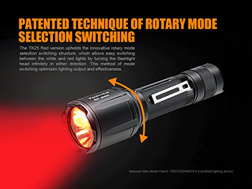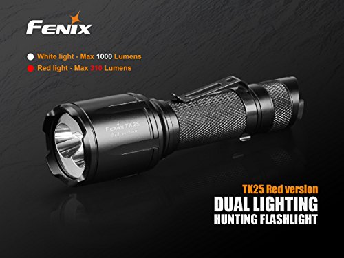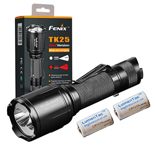 Fenix TK25 Red Version 1000 Lumen Dual White and Red Output Tactical Hunting Flashlight with 2x Lumen Tactical CR123A Batteries