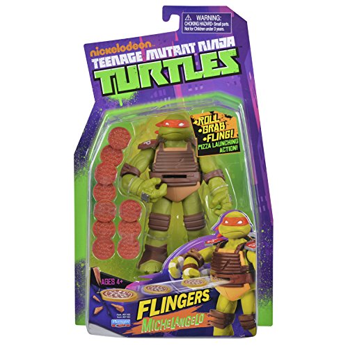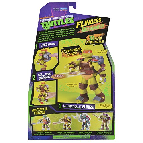 -. Feature : The Turtles hit the streets and fight back with rapid-firing Flingers action! Battle clad with rad junkyard armor, Mikey is swiping sideways and pitching pizzas, firing one after another, mowing down the Foot Clan / Load Pizzas! Roll Mike Sideways! Automatically Flings! / 10 Rapid Firing Pizzas! / Rapid-firing Flingers action! / 2012 Viacom International Inc. All Rights Reserved. TEENAGE MUTANT NINJA TURTLES and all related titles, logos and characters are trademarks of Viacom International Inc