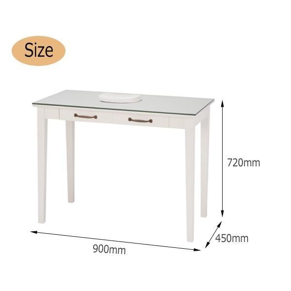 | 天板トップには強化ガラストップを追加しているので汚れに強く、ネイルカラーなどをこぼしても楽に掃除ができます。 |