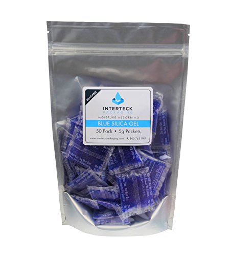50 Pack of 5gm Blue to Pink Indicating Silica Gel Packets Desiccants [2" x 1.5"] - RECHARGEABLE by Listing Intructions