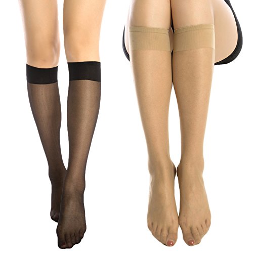 -. Title : MANZI Women's Black (6 Pairs) Nude (6 Pairs) Breathable Knee High Socks 15 Den