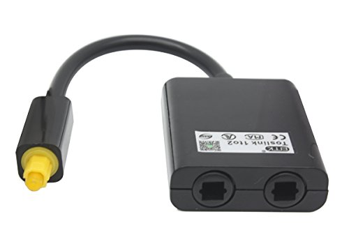 -. Feature : This SPDIF/TOSLINK Digital Optical Audio splitter allows you to distribute input digital optical audio to Two amplifiers or receivers, seamlessly and flawlessly without degradation / The 1 to 2 TosLink / Optical audio splitter adapter is ideal for connecting your CD player, DVD player, or other digital audio source to both of your receiver and recorder / The splitter adapter is perfect for professional or home installations as it saves on the wear of constant pling and unpling of cables / The adapter may be used with 1 input cable and 2 output cables (as a splitter) / Allows you to maximize your home theater system