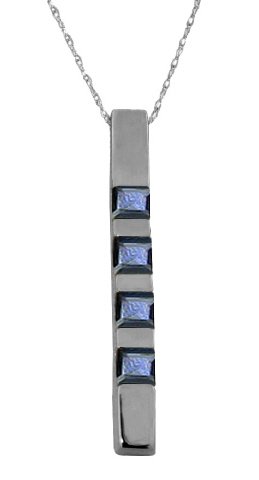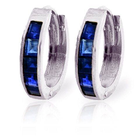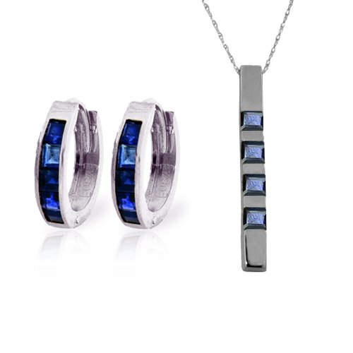 -. Title : 14k White Gold Jewelry Set: Natural Sapphire Pendant Necklace and Hie Hoop Earrings