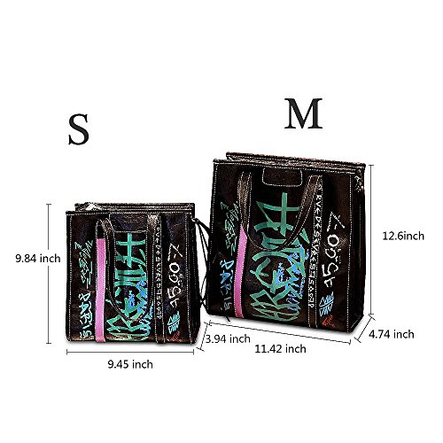 Balence Graffiti Motorcycle Top Handle Bag Tote Bag, Fashion Shopping PU Shoulder Bag