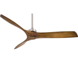 This Ceiling Fan is part of the Aviation Collection and has a Brushed Nickel/distressed Koa Finish. This Brushed Nickel/Distressed Koa fan has a Contemporary style that is sure to add a touch of charm to any room. The Variable blade pitch allowes for an ideal air flow for any sized room