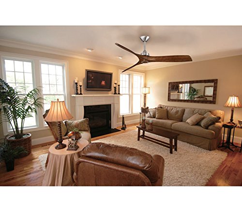 Designed with a brushed nickel body, this indoor ceiling fan was crafted with Three Distressed Koa Blades