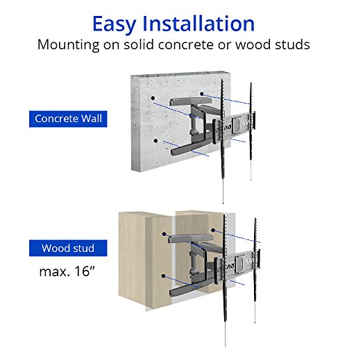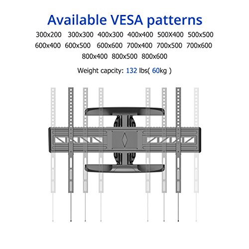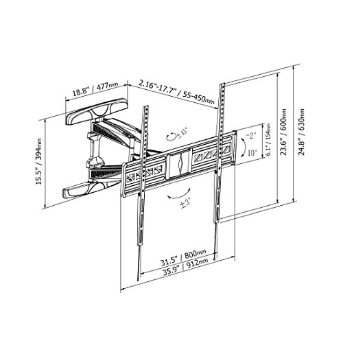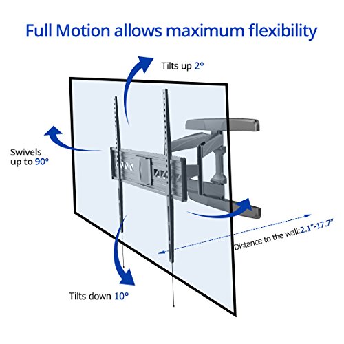 -. Binding : Electronics -. Brand : FLEXIMOUNTS -. EAN : 0850863006844 -. Feature : Articulating arm TV wall mount fits 47" 50" 52" 55" 58" 60" 62" 63" 65" 70" 75" 80" 84" LCD LED Plasma display; Mounting hole pattern compatible 300*200mm, 300*300 400*300mm, 400*400mm, 500*400mm, 500*500mm, 600*400mm, 600*500mm, 600*600mm, 700*400mm, 700*500mm, 700*600mm, 800*400mm, 800*500mm, 800*600mm / Adjustable -2-10 degree tilt, +/- 45 degree swivel; Retracts to 2.1"save space, extends up to 17.7" from the wall / High Quality Cold-rolled Steel material offers loading capacity to 132lbs / Common hardware pack included in the package / Post installation level adjustment allows TV to be level after mounting -. Label : FLEXIMOUNTS -. Manufacturer : FLEXIMOUNTS -. Model : A21 -. MPN : A21 -. PackageQuantity : 1 -. PartNumber : A21 -. ProductGroup : PC Accessory -. ProductTypeName : COMPUTER_ADD_ON -. Publisher : FLEXIMOUNTS -. Studio : FLEXIMOUNTS -. Title : Fleximounts A21 extra wide Full motion Swivel Tilt and Rotate TV Wall Mount Bracket for Most 47"-84" LED LCD and Plasma Flat Screens up to VESA 800 x 600 and 132lbs with Flush 2" Profile,Compatible with Sony Bravia Samsung LG Haier Panasonic Vizio Sharp Toshiba -. UPC : 850863006844