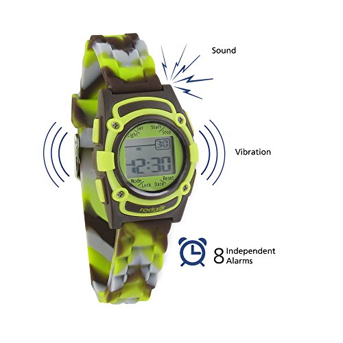 This stylish kid-friendly reminder watch is so cool that no one will know that it has a special function-to provide a discreet timed reminder. This watch vibrates discreetly for 12 seconds, making it hard for even the most pre-occupied person to ignore. Its small size and fully adjustable vinyl band with multiple holes allows it to securely fit even the smallest wrists.