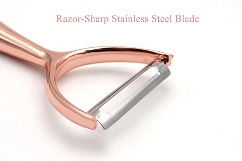 FOOD GRADE STAINLESS STEEL BLADE The blade is made from food grade stainless steel,safety and health. The blade is very sharp and peel vegetable easily.