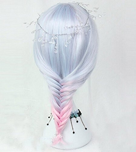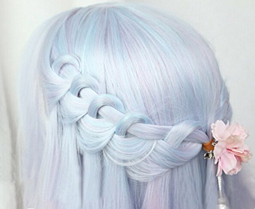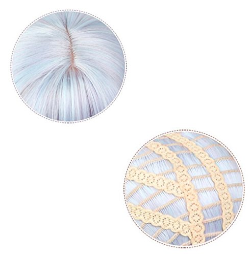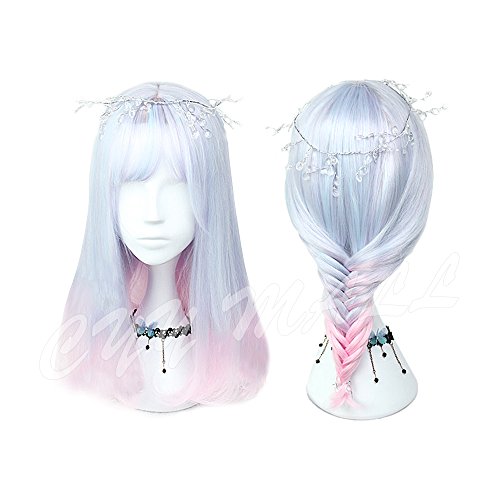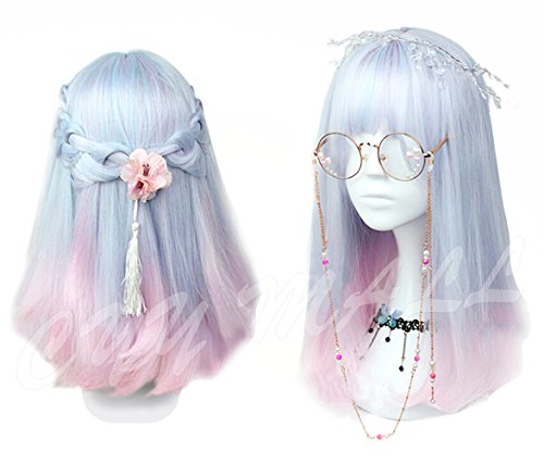 Women Girls Medium Size Harajuku Light Blue Mixed Pink Sweet Lolita Wig Super Natural Club Bob Costume Party Daily Hair with Wig Cap