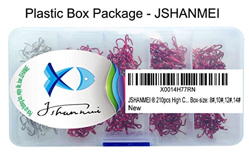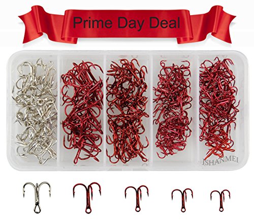 JSHANMEI 210pcs High Carbon Steel Classic Treble Hooks Standard Strength Fishing Hooks with Tac...