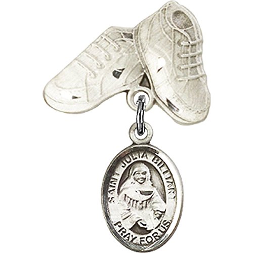 -. Title : Sterling Silver Baby Badge with St. Julia Billiart Charm and Baby Boots Pin 1 X 5/8 inches