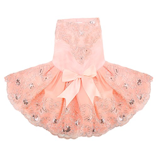 Appealing Exterior This dog clothes adopts stereo lace ribbon which is completely handmade. Wearing the dog dress, your baby will look like a princess and attract other people's eyeballs. It fits the wedding or other formal occasions perfectly.