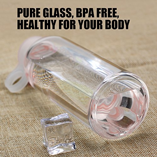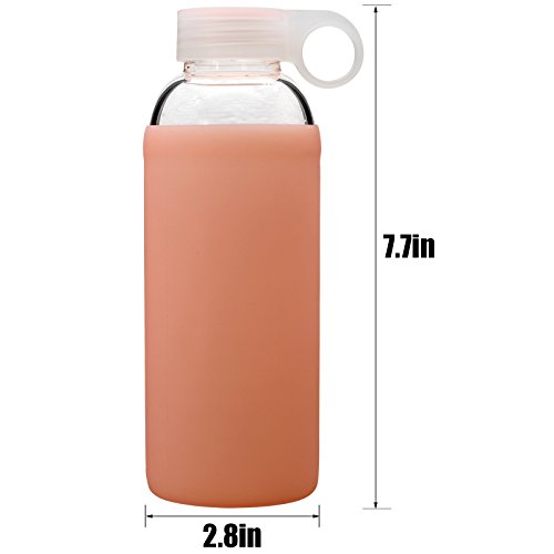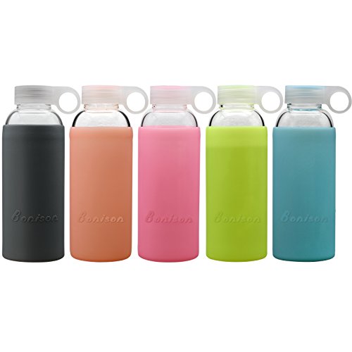 Not your ordinary glass liquid bottle BONISON borosilicate glass water bottle is known for its superior durability BONISON durable glass water bottle is finely designed for any drink of your choice. For decades, people have preferred glass to any other material because they say it tastes better. You be the judge various color options: Blue, peach, pink, and yellow. Get one for yourself and a different color for a gift. - bpa free - food-safe - non-permeable. , Enjoy your drink without worrying about toxic chemicals., **More durable and has a high-toleration to temperature with its thickness and glass material. Wash and reuse over again and it will still maintain its shape, cleanliness, quality, and durability. Non-fragile & safe **leak proof with silicone rings and shatter-resistant with borosilicate glass. Under normal use, BONISON glass water bottle will not break. It can be accidentally dropped to the floor without worry of breaking. Not only is it made with borosilicate glass, but it is protected with BONISON's silicone sleeves. The silicone sleeves not only add a stylish flare but will protect the bottles and help prevent them from breakage. With BONISON's silicone sleeves, the water bottle doesn't feel slippery, preventing it from becoming too slick with condensation or sweat and reducing the potential for breakage. *Although BONISON glass water bottle is tougher, stronger, and more durable than your conventional glass bottle, breaking is rare but possible. If shattering is a concern for you, this glass bottle is prone to cracking into large pieces, making it a safer glass bottle to use. Water bottle cap includes a convenient loop on the end of the cap allowing for ease when traveling. Silicone sleeve, cap, and bottle are dishwasher safe. The silicone sleeve and bottle are microwaveable. Buy BONISON glass water bottle today .Feature
