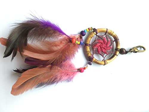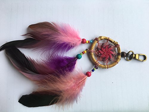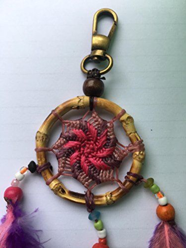 Natural Bamboo Dream Catcher Keychain Diameter 2 Inch 1 Pcs. (Pink)