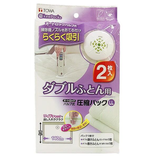 | ダブルサイズの敷きぶとんなどにも使える大きさの圧縮袋2枚セットです。ノズルを離しても空気が逆戻りしないオートロックバルブ式、ふとんが出し入れしやすいワイドチャック、開閉の確認がしやすいカラーファスナーを採用。チャックを閉じるのに便利なスライダー付き。 |
