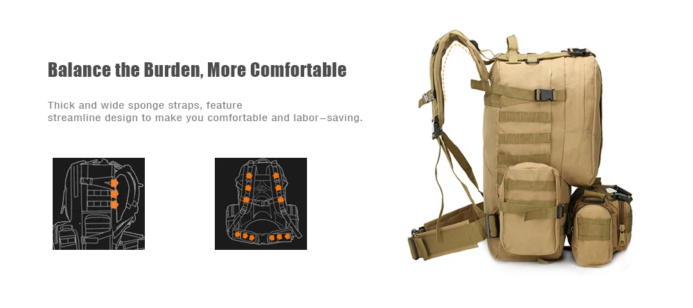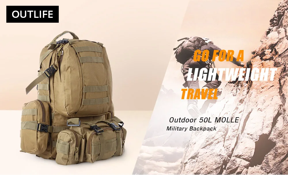 Outlife Outdoor Climbing Bags 50L Molle Military Tactical Backpack Rucksack Sports Bag For Outdoor Camping Hiking Climbing