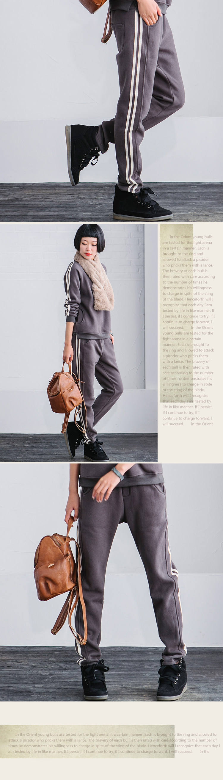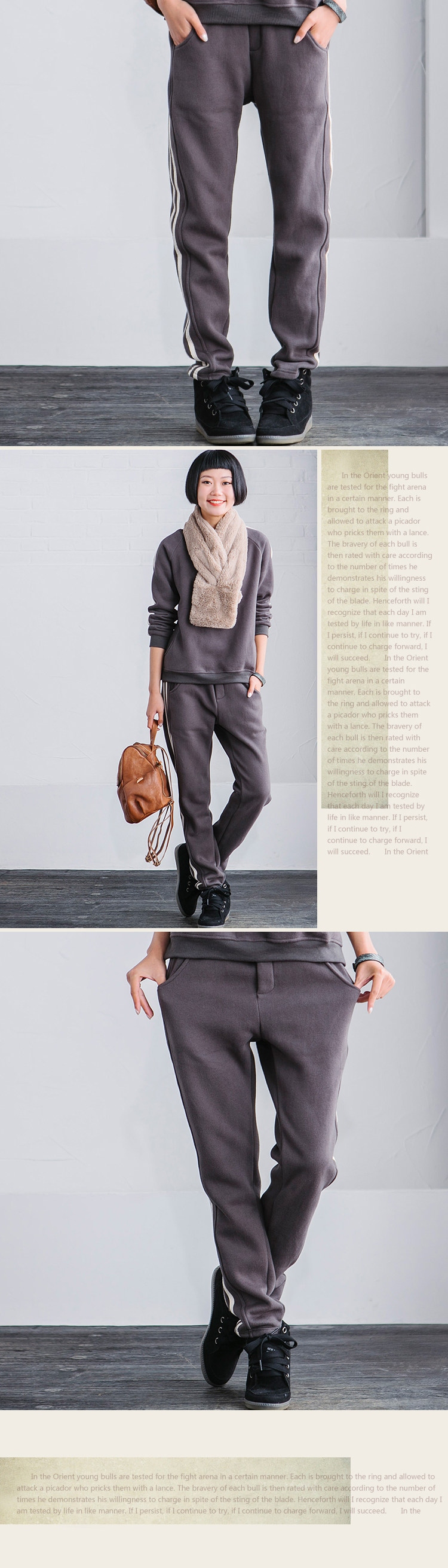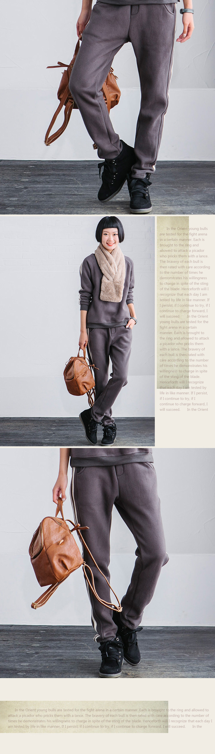 聚酯纤维+棉,手感舒适,稍有弹力,厚度稍厚,适宜秋季穿 |