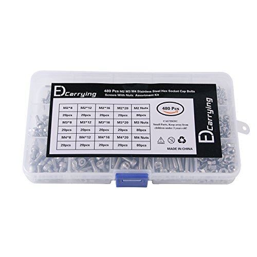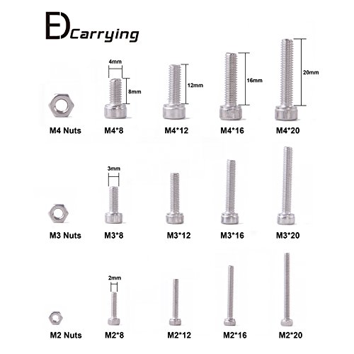 - MOST USED SIZES: EDCarrying’s collection of screws and nuts are the most used sizes in your daily work, which include M2, M3 and M4 (8, 12, 16, 20mm length).