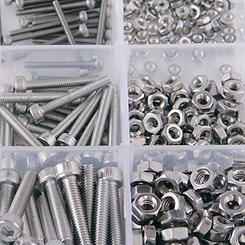 EDCarrying 480 Pcs M2 M3 M4 Stainless Steel Hex Socket Cap Bolts Screws with Nuts Assortment Kit SN-480S (Silver)