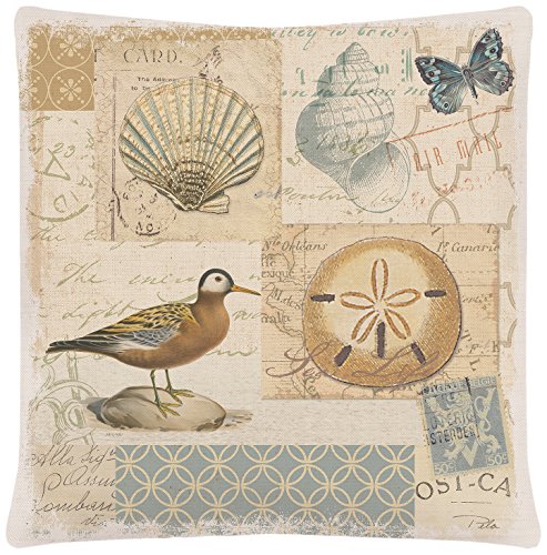 Heritage Lace Shorebirds Pillow, 18 by 18-Inch, Oyster