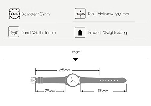 -. Feature : SIMPLE CASUAL DESIGN: Elegant fashion style,unisex size for both man and woman,suitable for all acassions as business watch or daily watch / GENUINE LEATHER STRAP: High quality real leather made bracelet,durable and comfortable,buckle clasp,easy to fit wrist / ACCURATE TIME KEEPING: Imported Japanese CITZEN quartz movement,precise display / WATERPROOF:Standard 3ATM Water resistant,for washing hands,rainny day,sweating,etc. But not for warm/hot water or long time submersion,don't pull out the crown in water / AFTER-SALE SERVICE: Well packaged in nice gift watch box. 90-day free return/exchange,any question or problem,please feel free to contact seller