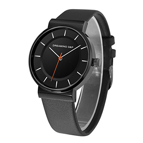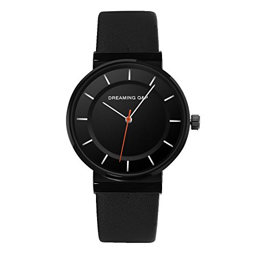 -. Title : Black Women's Men's Unisex Leather Watch,Simple Casual Analog Dress Wrist Watches for Men Women WD260