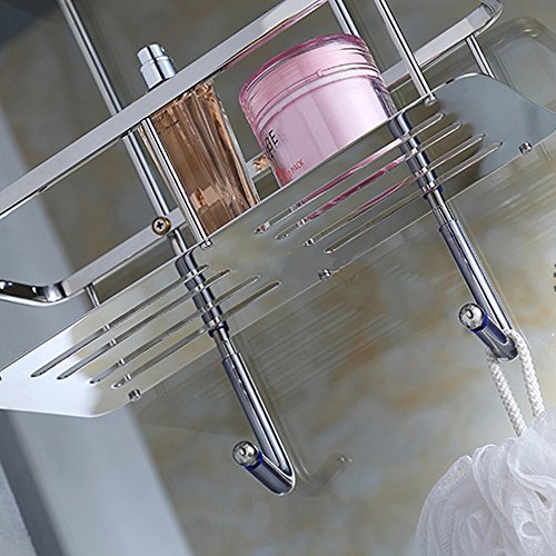 Bathroom Constant Tension Corner Hanging Shower Caddy with Hooks for Shampoo, Conditioner and Soap for Bathroom