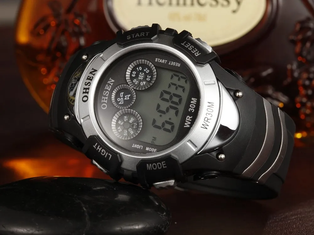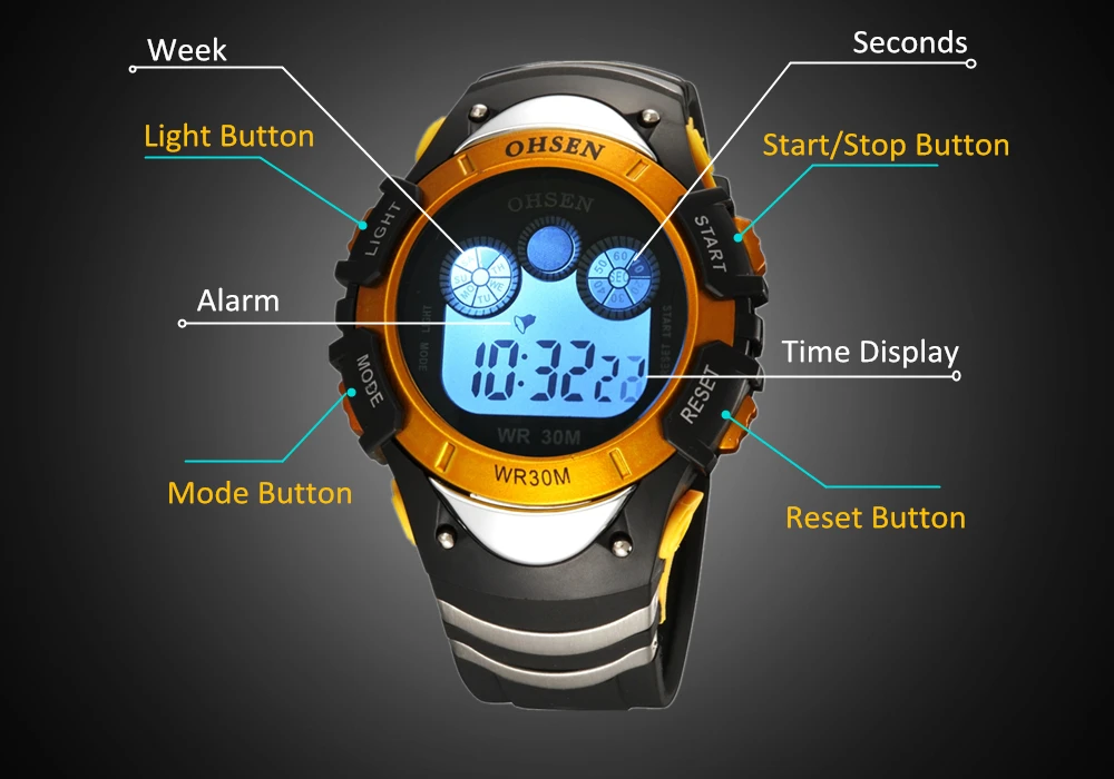 Feature:Back Light,Alarm,Water Resistant,Chronograph,Shock Resistant,Stop Watch,Complete Calendar,Swim,Auto Date,LED display