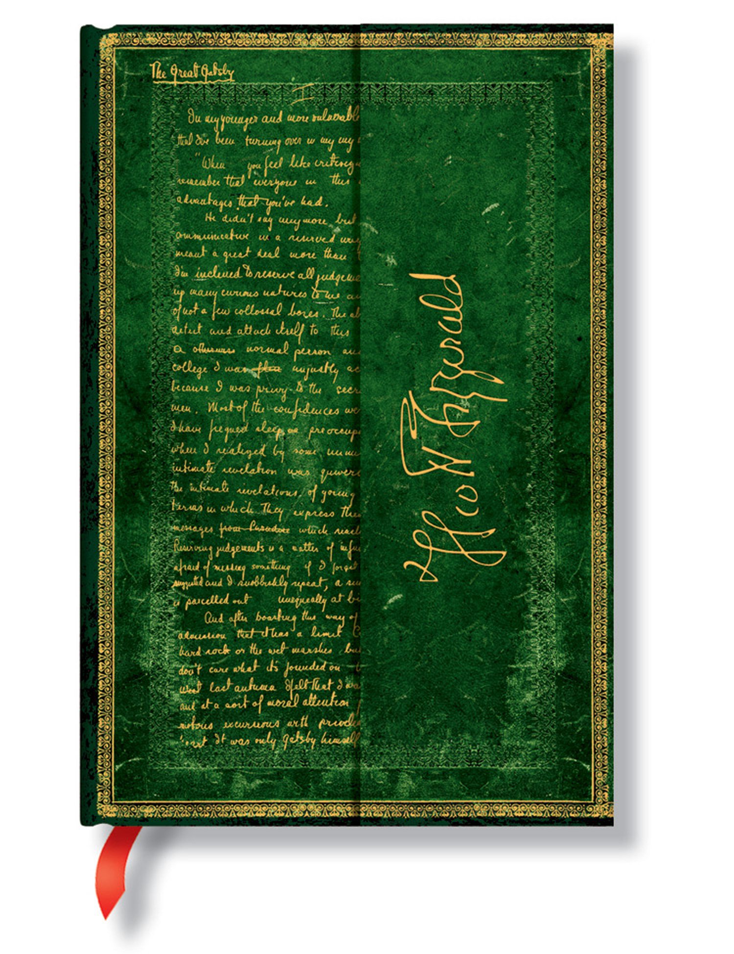 This binding motif is a manuscript written by Fitzgerald's masterpiece "Gorgeous Gatsby".