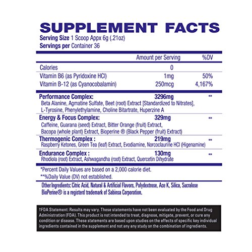 -. Feature : Build Muscle, Increase Energy and Performance without excessive doses of caffeine / Triple Action Nitric Oxide releasing agents - Beet Root extract and Agmatine, for increased muscle perfusion and clearance of lactic acid, leading to increased power and endurance / Most Effective Pre workout Energy Powder Supplement. / Take Your Training to the next level. This precision-engineered formula unlocks your most explosive workouts ever. / Increase endurance, lean muscle and get a better workout with powerful pre workout ingredients - 90 day MBG