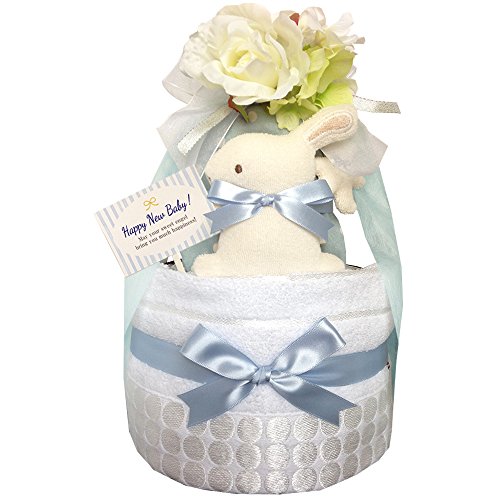 -. Title : おむつケーキ オーガニック 出産祝い 人気 男の子 今治タオル マスコットガラガラ くまモチーフ付スタイ 赤ちゃん 内祝い 誕生日プレゼント ギフトセット