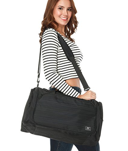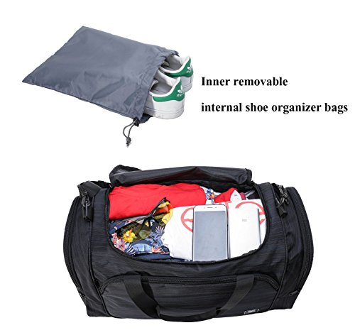 Product Description Simplicity is beauty, MIER duffel bag is big enough to fit your running shoes, several changes of clothes, toiletries and etc, but small enough to carry on a crowded subway during rush hours. It fits gym lockers. Another, thanks to its high quality durable nylon material makes it strong enough to endure constant transportation; to help you carry the bag around you'll find a well-stitched carry-handle and an adjustable/detachable padded shoulder strap for your convenience, it offers incredible versatility as overnight stays bag or a weekend bag 0