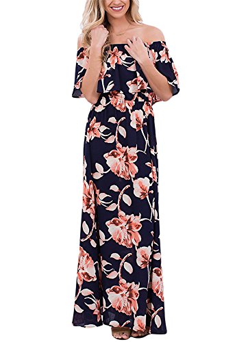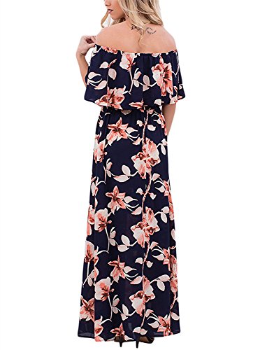 Floral printed.Off Shoulder Maxi Dress.Slim fit. Suit for wedding,formal,cocktail,bridesmaid,casual,party,evening dinner and special occasion.
