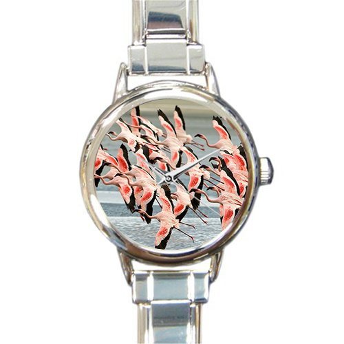 -. Title : Personalized Watch Flying Flamingos Round Italian Charm stainless steel Watch